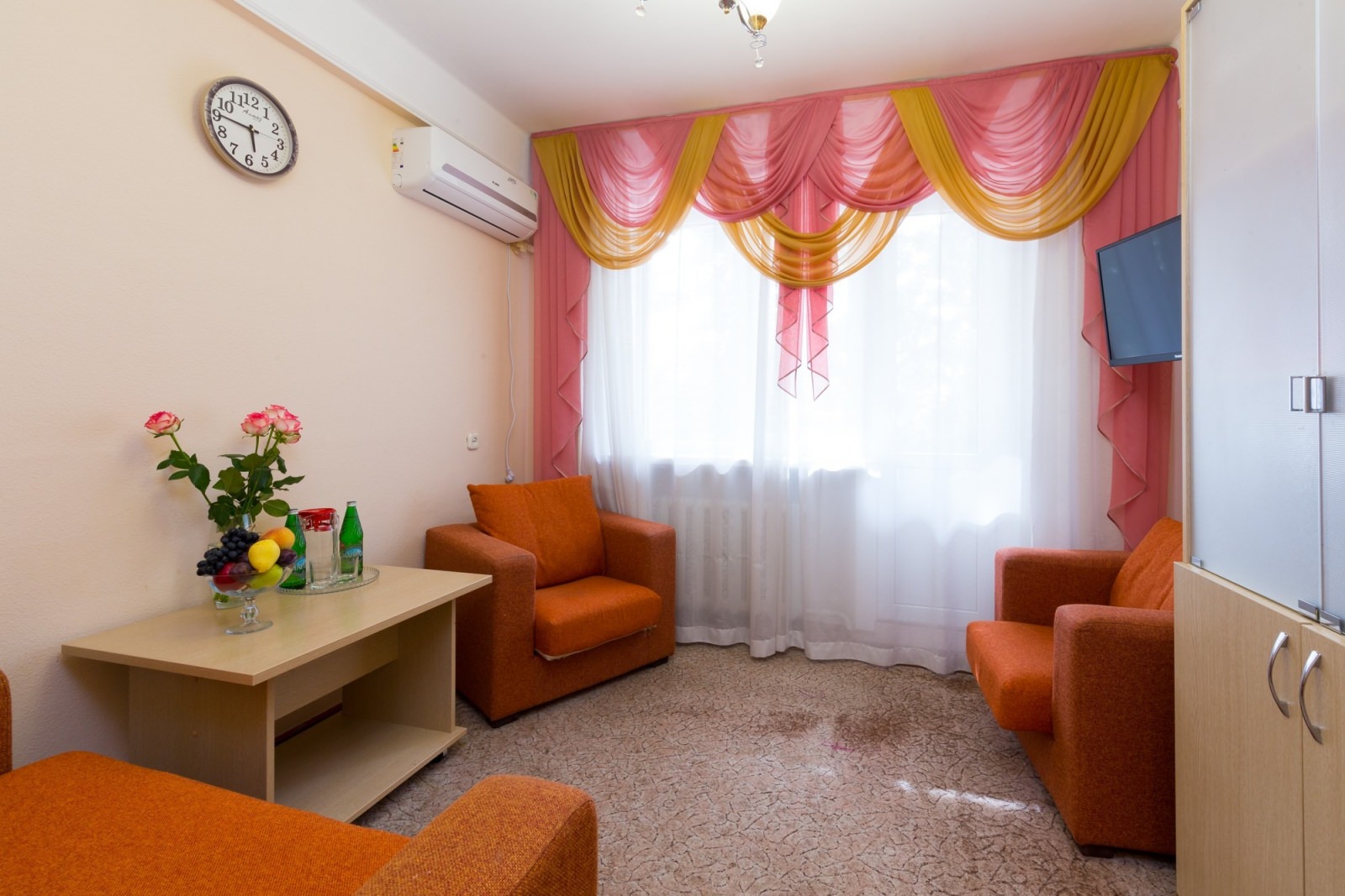 Площадь номер составляет 27 кв.м. Здесь имеются гладильная доска и утюг.