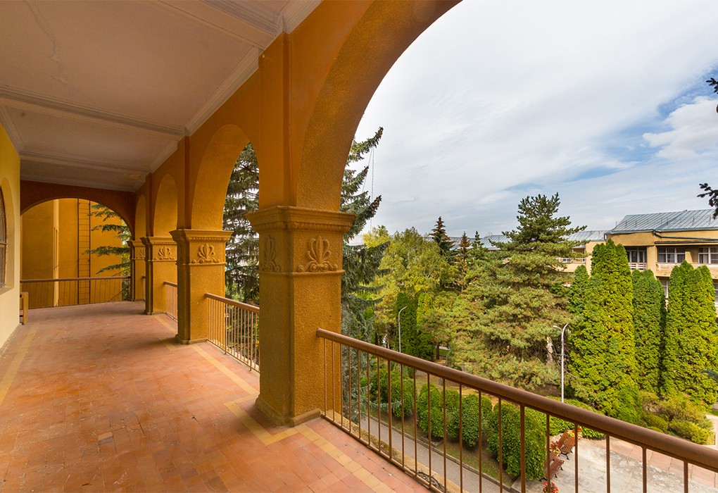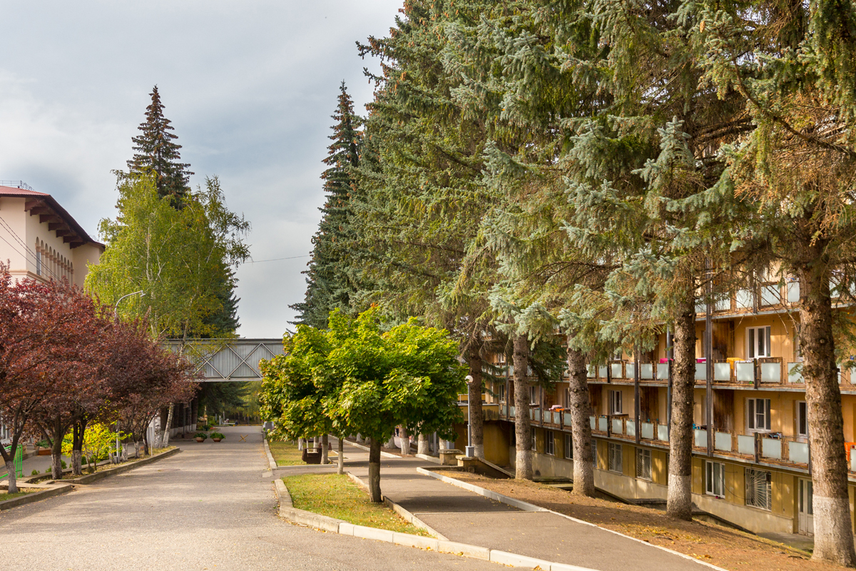 Вся территория санатория находится под круглосуточной охраной. Собственная лесопарковая зона, оборудованная скамейками и уличным освещением. Бесплатная парковка на территории санатория на 15 машиномест. Шаговая доступность Национального парка «Кисловодский». Бювет с лечебной минеральной водой в здании корпуса №1.